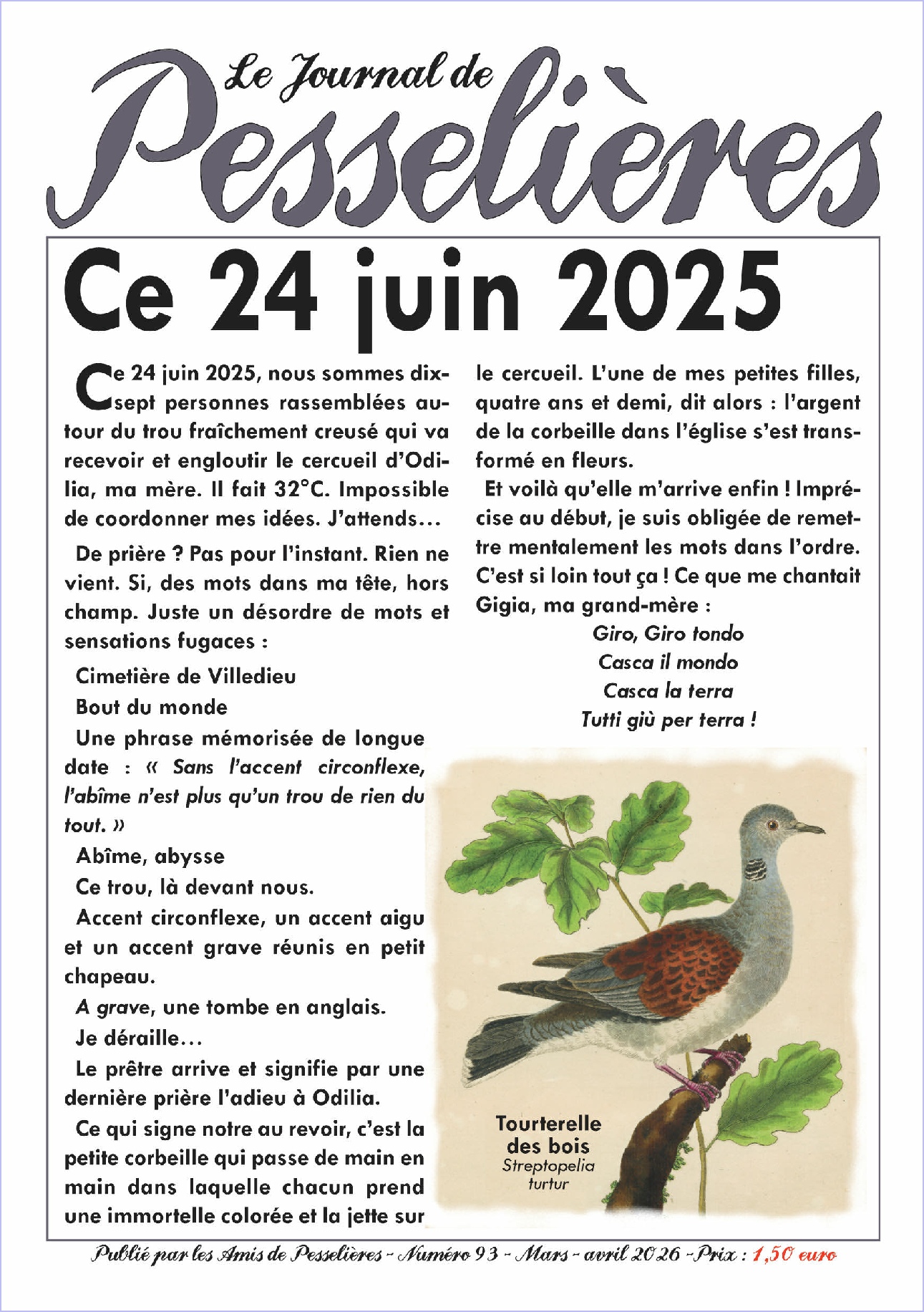 Le Journal de Pesselières numéro 90 est enfin arrivé chez les abonnés.